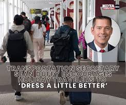 [ https://www.khq.com/national/transportation-secretary-urges-travelers-to-dress-better-at-airports-for-holiday-travel/article_c33e4ee1-e7eb-44b7-af8c-5389bd600c3c.html ]